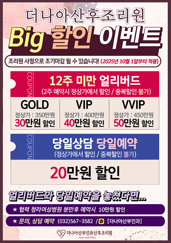 [더나아산후조리원] ♡Big 할인 이벤트♡ 페이지 정보 작성자 더나아산부인과 연락처 작성일 작성일25-11-17 10:12 목록 본문 [더나아산후조리원] ♡Big 할인 이벤트♡ 목록